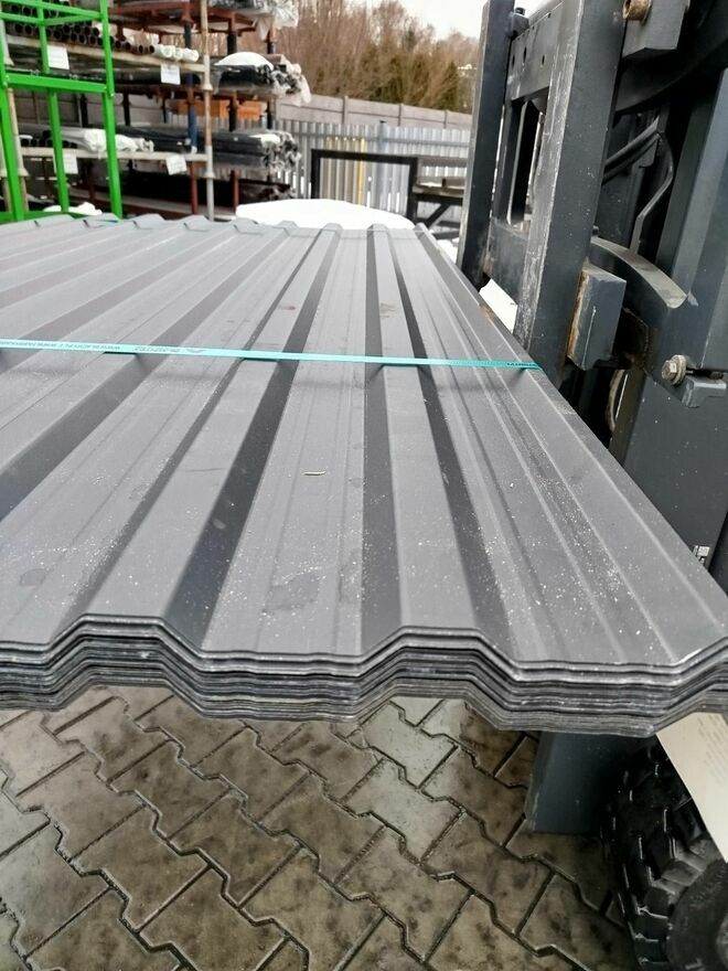 Blacha trapezowa T-18 antracyt mat, blacha może posiadać wady na powłoce w postaci zarysowań, odkształceń, różnic w odcieniach;Dane techniczne