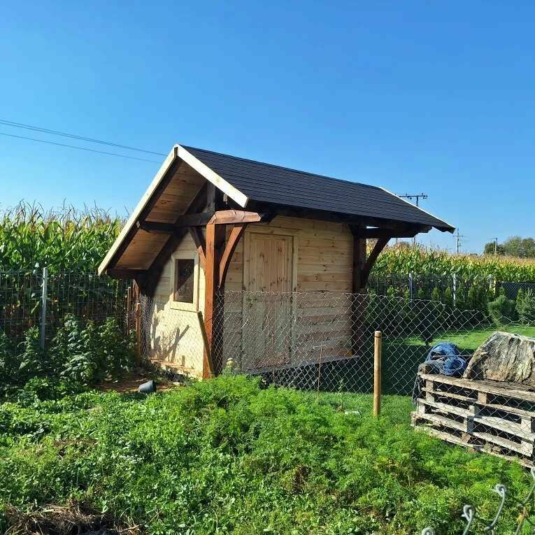 Witam na naszym ogłoszeniu, oferujemy Państwu domek narzędziowy wykonany z litego materiału sosnowego kryty gontem bitumicznym. Wymiary podstawy 2,5x3m, wysokość wewnątrz 1,5m tylna ściana i 2,8m ściana frontowa. Domek posiada własną podłogę, szkielet konstrukcji widoczny od strony zewnętrznej. Cena podana w ogłoszeniu dotyczy wyżej opisanego domku wizualnie zgodnego z zamieszczonymi zdjęciami ( cena nie uwzględnia malowania )i uwzględnia dostawę i montaż na terenie woj. Lubelskiego. Na życzenie klienta możemy wykonać konstrukcję na indywidualne zamówienie według wymiarów podanych przez inwestora (istnieje możliwość wykonania innych modeli na podstawie wizualizacji lub zdjęć ), po więcej info prosimy pisać lub dzwonić.Zapraszamy do kontaktu.