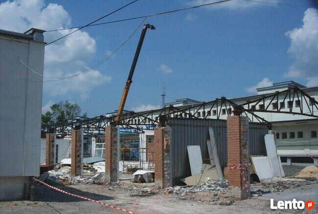 Oferujemy do sprzedaży dźwigary kratowe dachowe dwuspadowe stalowe pod konstrukcję dachową hali lub wiaty . Rozpiętość dźwigaru 9m. Rozpiętość między dźwigarami 4 m. Ilość dźwigarów 5 szt. Pozwoli to na wybudowanie obiektu o długości 80m i szerokości wewnątrz 8 m.Dostępne są również łaty z ceowników o długości 4 m. Faktura Wat.
