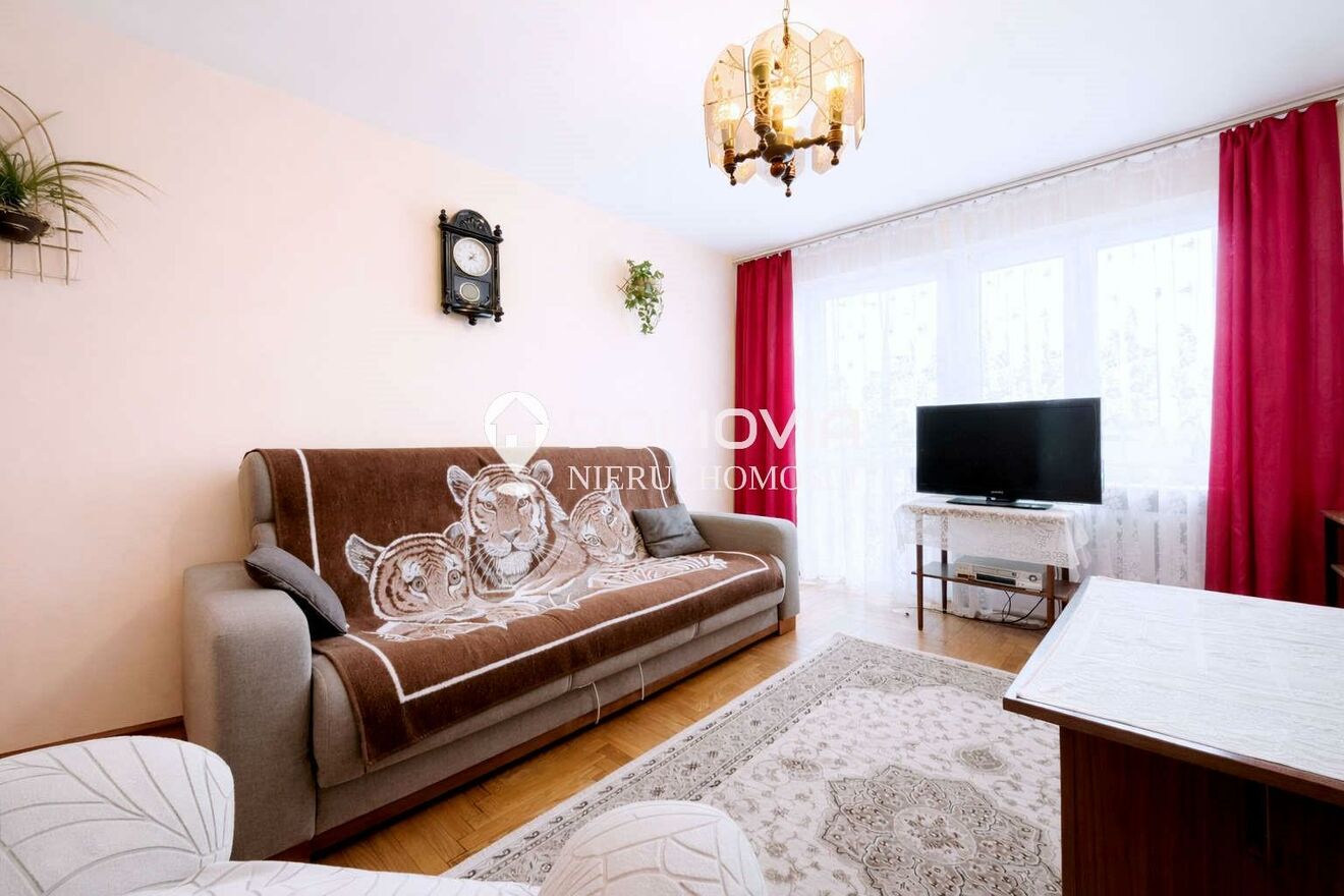 Lokal o powierzchni 56m2 położony jest na 3 piętrze w czteropiętrowym bloku i składa się z jasnego i ustawnego salonu z wyjściem na balkon, dwóch sypialni, kuchni, łazienki oraz toalety. Do mieszkania przynależy także piwnica.