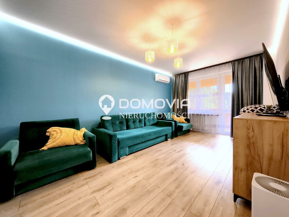 W mieszkaniu zainstalowana została klimatyzacja co znacząco poprawia komfort w upalne dni.