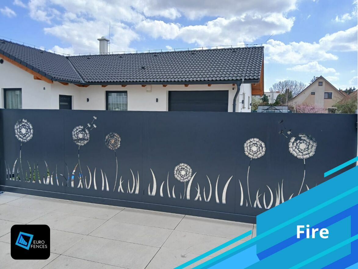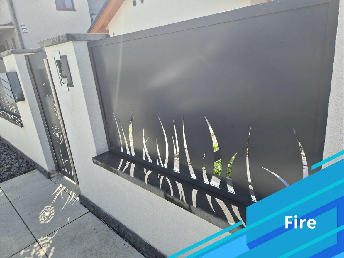 Model Fire - nowoczesne i zarazem ponadczasowe ogrodzenie wykonane z wypalanej blachy aluminiowej.Podana cena to cena za metr bieżący ogrodzenia modelu Fire o wymiarach 1500 wysokości.