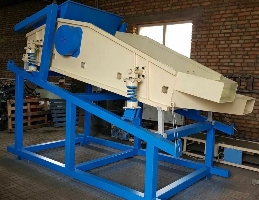 Przesiewacz wibracyjny skośny GV-1000 (2024)Przesiewacz wibracyjny GV-1000 to uniwersalne urządzenie do przesiewania różnorodnych materiałów budowlanych, takich jak piasek, wapień, granit, dolomit, marmur i inne. Może również służyć do frakcjonowania produktów rolnych – zarówno jako niezależna jednostka, jak i jako część zautomatyzowanych linii sortujących.