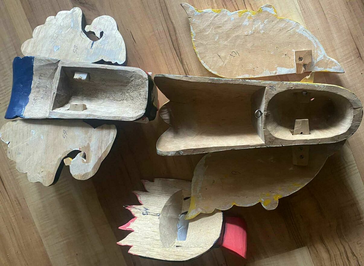 3 drewniane maski z Sri Lanki wysokość masek to ok 26 cm 21 cm 20 cm + koszty wysyłki uszkodzenia widoczne na fotkachSprawdź zainteresowanie tym ogłoszeniem