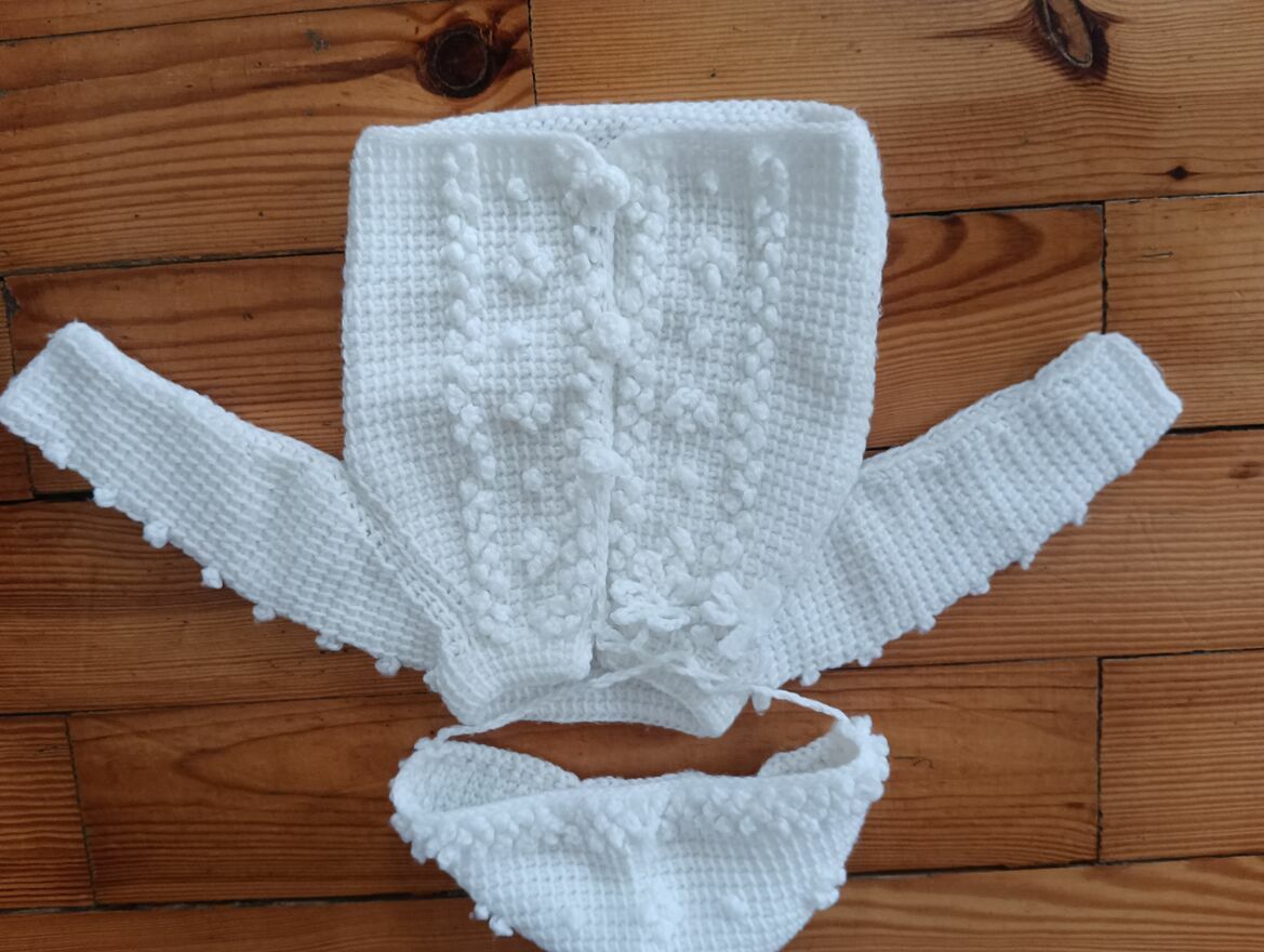 Możesz umówić się i zamówić sweterek z czapeczką oraz bucikami do chrztu.